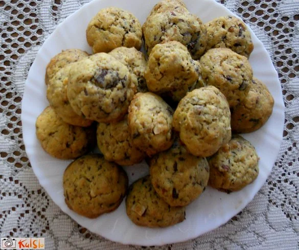 Surovo maslo penasto zmešamo s sladkorjem, dodamo vanilijev sladkor in vse temeljito premešamo. Vmešamo raztopljeno sodo, med mešanjem dodamo s soljo presejano moko, orehe in čokoladne ostružke. Z dvema žlicama jemljemo testo in ga damo na pekač 7,5 cm narazen. Pečemo jih 10 - 12 minut na 190 stopinjah v prej ogreti pečici.
