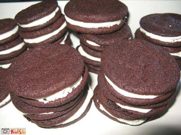 poiščemo približno enako velike piškote, na enega nabrizgamo kremo, drugega potisnemo na prvega, da se krema malo izboči. Kreme je več kot dovolj za toliko piškotov.