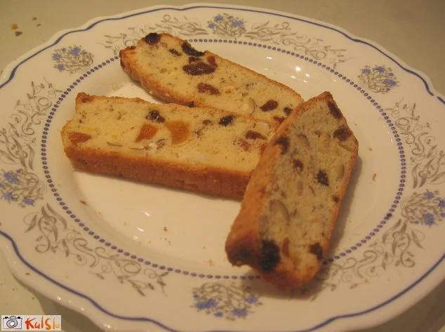 Jajca, sladkor in vanilij penasto zmešamo, nato dodamo na grobo narezane orehe, rozine, moko s pecilnim, naribano limonino lupinico, čokolado in cimet. Če se vam zdi masa pregosta, dodajte še malo mleka. Maso potem vlijemo v namazan in pomokan pekač in spečemo. Še toplo pecivo narežemo na koščke.
