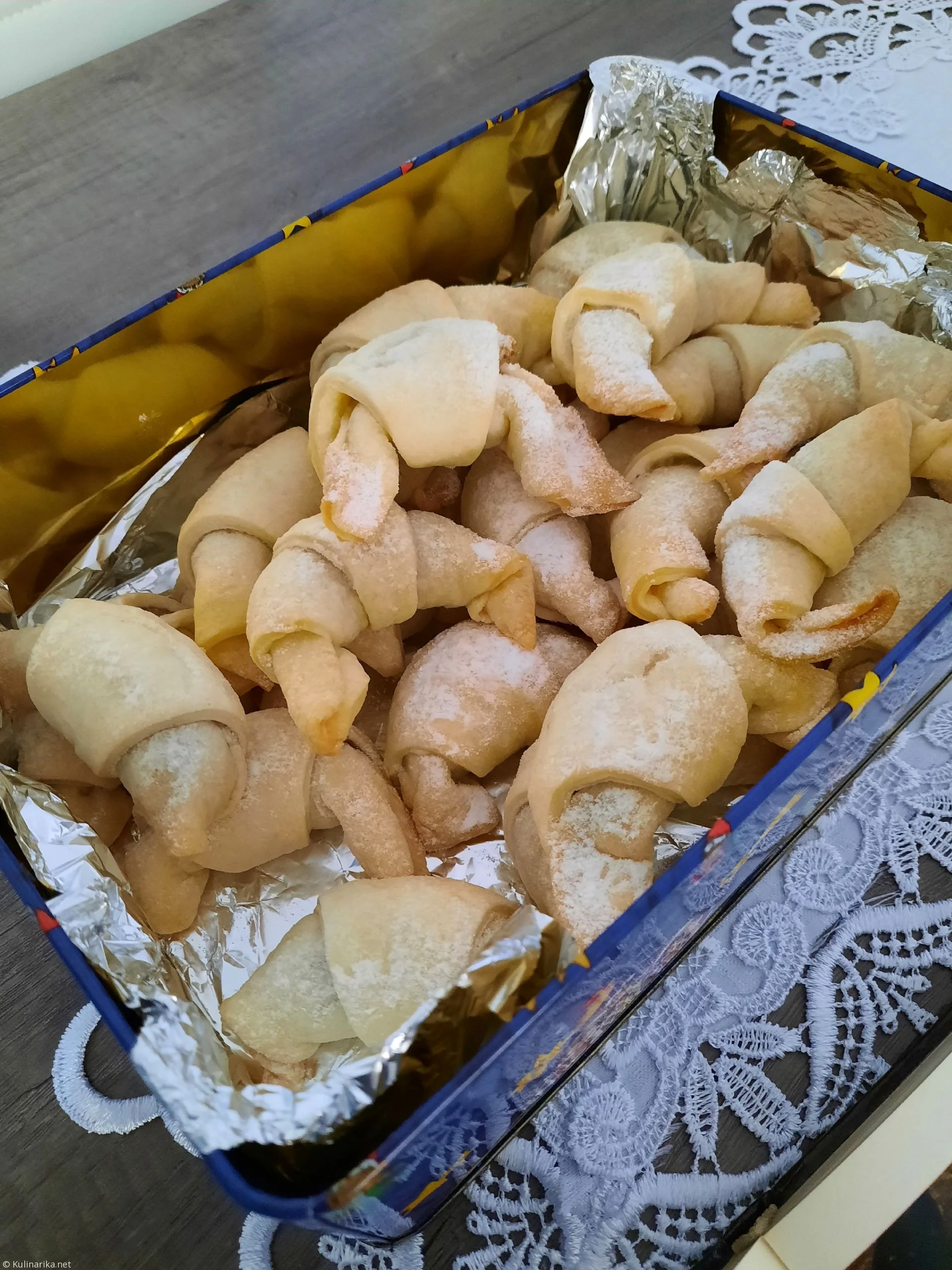 Zamesimo testo, ki naj počiva v hladilniku 1 uro. Nato ga razdelimo na 4 dele in vsak del razvaljamo v primerno velik krog. Vsak krog razrežemo na 8 delov. Na rob vsakega trikotnika damo malo nadeva, zvijemo v rogljičke in spečemo. Za nadev zmešamo vse sestavine v gosto in sočno zmes.