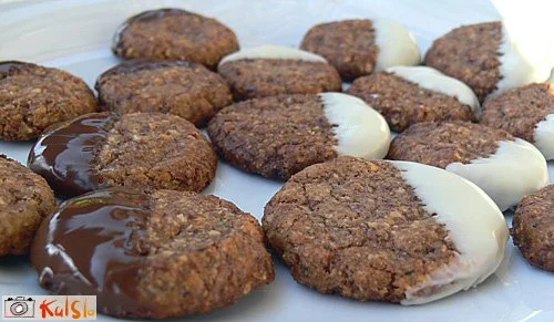 Pečemo na 180 stopinj približno 10 minut. Ko vzamemo piškote iz pečice, morajo biti še mehki, saj se naknadno strdijo. Paziti je potrebno, da se čokolada ne zažge, saj potem piškoti grenijo. Ohlajene piškote do polovice pomočimo v raztopljeno kuverturo.