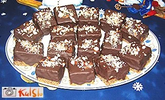 Stopimo kuverturo. Pecivo narežemo na kvadratke. Vsak kvadratek posebej z vrha do tri četrt pomočimo v stopljeno kuverturo in posujemo s sesekljanimi lešniki. Damo na hladno, da se kuvertura strdi.