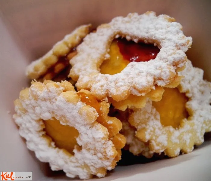 Iz navedenih sestavin ugnetemo testo, ki naj počiva vsaj 1 uro. Na tanko razvaljamo in izrežemo piškotke. Polovico piškotkov pustimo celih, drugi polovici na sredi vtisnemo luknjo npr. z naprstnikom (če nimamo modelčka za linške piškotke) in pečemo na peki papirju na 180 stopinj približno 15 - 20 minut.