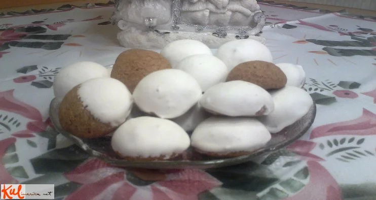 Ohlajene medenjake pomakamo v glazuro, ki smo jo pripravili iz beljaka, v katerega smo vmešali sok 1/2 limone in cca. 200 g sladkorja.