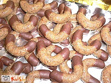 Joj, tole pa je bilo nekaj krasnega za božič!!!! Navadnih orehovih rogljičkov so itak pri nas že vsi preobjedeni, saj so se delali vsako leto (mama je pač tradicionalna). In ko sem lani vsakomur povedala, kaj vse je na krožniku (na pladenj cedno dam celo vrsro piškotov - vsaj pet različnih), so se lotili vsega, le teh trogljičkov ne. Na koncu so ostali skoraj samo še tile frajerji orehovi. In so jih poskusili. A veste, da sem morala naslednji dan narediti kar dvojno rundo teh rogljičkov??? Superca!