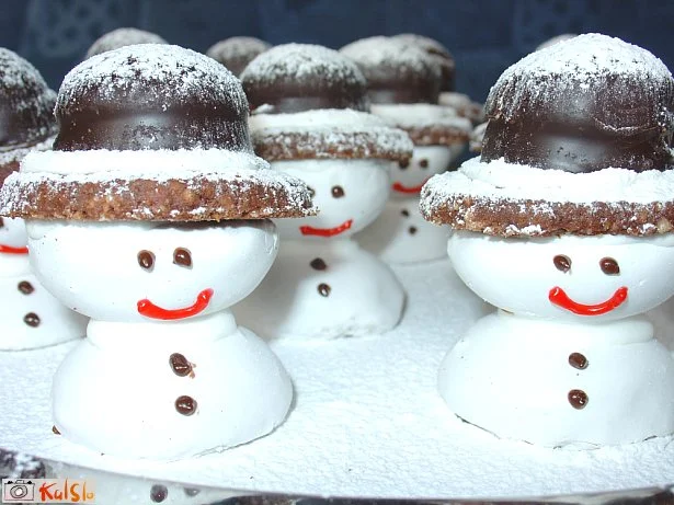Tudi jaz sem idejo povzela iz praznične Jane, december 2008 (avtor ni bil podpisan). Sem se pa potrudila le toliko, da sem v zdajšnjih trgovinah poiskala primerne kekse za izdelavo snežakovih klobukov. Izbira je bila pravilna, saj so snežaki zelo obstojni, niso drobljivi in še dobri so. Moji prijatelji so bili navdušeni.