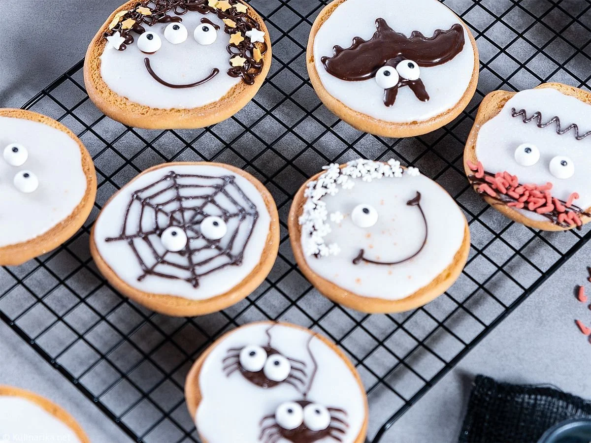 Pečico segrejemo na 180 stopinj (izberemo peko na vroč zrak). Maslo, sladkor, vanilijev sladkor in sol z ročnim mešalnikom penasto stepemo, nato postopoma umešamo še jajci. Suhe sestavine zmešamo in presejemo v drugo posodo, nato jih izmenično z mlekom po žlicah vmešamo v maso za piškote. Dva pekača obložimo s papirjem za peko. Za vsak piškot z žlico zajamemo maso in jo damo na pekač. Na vsakem pekaču oblikujemo 6 okroglih piškotov premera približno 7 cm, med katerimi pustimo nekaj prostora. Piškote pečemo 12–15 minut, da se zlato - rjavo zapečejo, nato jih ohladimo na rešetki. Ohlajene piškote obrnemo s spodnjo stranjo navzgor. Sladkor v prahu zmešamo z limoninim sokom in z njim premažemo piškote. Čokolado stopimo, jo prelijemo v vrečko za okraševanje in z njo porišemo piškote. Za okrasitev lahko uporabimo tudi drugo dekoracijo za torte in sladice.