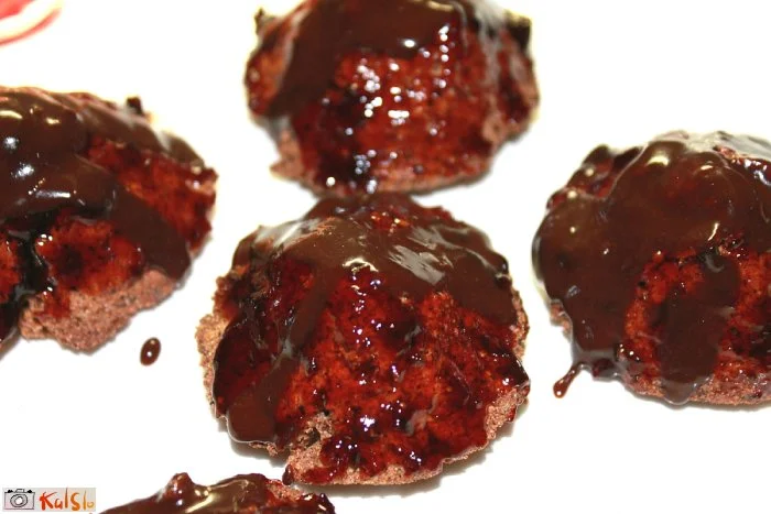 Nasveti: uporabila sem svojo, domačo ribezovo marmelado. Pomembno je, da je marmelada bolj kisla. Čokoladni preliv sem naredila na pari, iz čokolade v prahu, kateri sem dodala kokos maščobo in kapljice mleka. V čokoladnem prelivu ni sladkorja, tako pride bolj do izraza kislo sladek okus med marmelado in čokolado. Lahko uporabite tudi kupljen čokoladni preliv v vrečki.