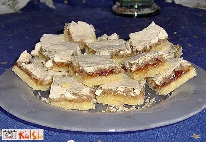 Iz sestavin za testo zgnetemo testo in ga zvaljamo v velikosti večjega pekača ter položimo na pekač in v pečici pri 200°do rahlo rumene barve popečemo. Nato to ploščo pomažemo z marmelado in nanjo razgrnemo sneg iz beljakov, v katerega smo vmešali sladkor in kokosovo moko. Pekač damo v pečico pri 160°in pečemo še 1/2 ure.