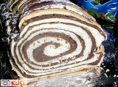 Za testo pristavimo kvas v malo mlačnega mleka z žličko sladkorja. Ostanek sladkorja in sol zmešamo z mlekom in dvema rumenjakoma.Iz presejane moke, vzhajanega kvasa, mlačnega mleka in olja zamesimo testo, da postane gladko. Ko testo naraste, ga na pomokani deski razvaljamo za prst na debelo in namažemo z nadevom.