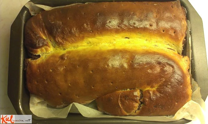 Glede nadeva pa naj samo omenim, da ne bo pomislekov, nadev se težko razmaže zaradi same gostote, tako da ni nobenih strahov, kakorkoli boste naredili recept, a vseeno je boljše, da je bolj gost kot pa redek in testo naj bo na tesno zvito, da ne bo skorja odstopala.....