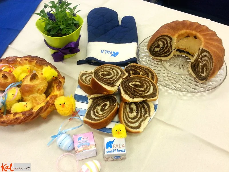 V topli sirotki raztopimo kvas Fala (če nimamo sirotke, uporabimo mleko). V posodo odmerimo sol, moko, dodamo jajci, rum, sladkor in prilijemo raztopljeni kvas. Počasi premešamo sestavine in med mešanjem dodajamo na lističe narezano maslo. Nato mešamo na višji hitrosti le toliko časa, da se sestavine povežejo med seboj. Testo prekrijemo s folijo in ga damo na toplo vzhajati.
