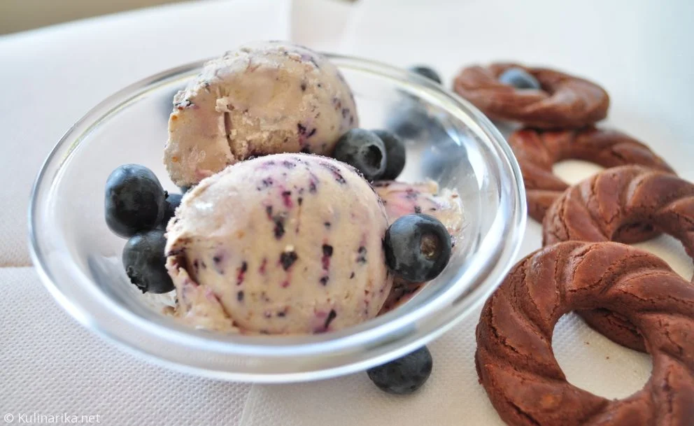V posodi s paličnim mešalnikom (ali blenderjem) zmešamo borovnice in sladkor. V drugi posodi stepemo sladko smetano in jo dodamo zmletim borovnicam in sladkorju. Na rahlo premešamo in damo v zamrzovalnik.