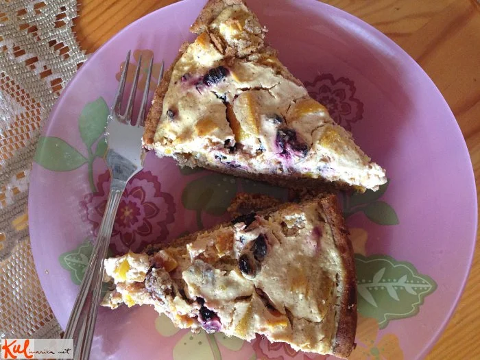 Vse sestavine za testo najprej dobro zmešamo z gnetilnima kavljema, nato pa še z rokami ter postavimo v hladilnik. Medtem pripravimo nadev. Za nadev enostavno vse zmešamo skupaj. Sedaj vzamemo testo iz hladilnika. Eno tretjino testa damo na stran za obrobo. Drugo razvaljamo in damo v pomaščen pekač za torte (premer 28 cm). Sedaj vzamemo tisto prihranjeno tretjino testa in iz njega naredimo tako dolg svaljek, kot je obseg pekača. Ko imamo svaljek, ga postavimo v pekač in pritisnemo ob rob. Pekač postavimo v segreto pečico na 200 stopinj za 10 minut. Potem ga vzamemo ven in po njem enakomerno razporedimo nadev. Za 10 - 15 minut ga damo nazaj v pečico oz. za toliko časa, da je pečen(preverimo s čistim nožem - zabodemo v obrobo in ne v nadev). Ko je pečena, vzamemo pito iz modela in jo narežemo na poljubno velike kose.