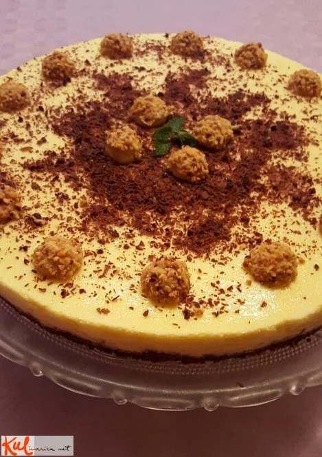 Prelijemo po piškotni podlagi in vrnemo v hladilnik, da se strdi.