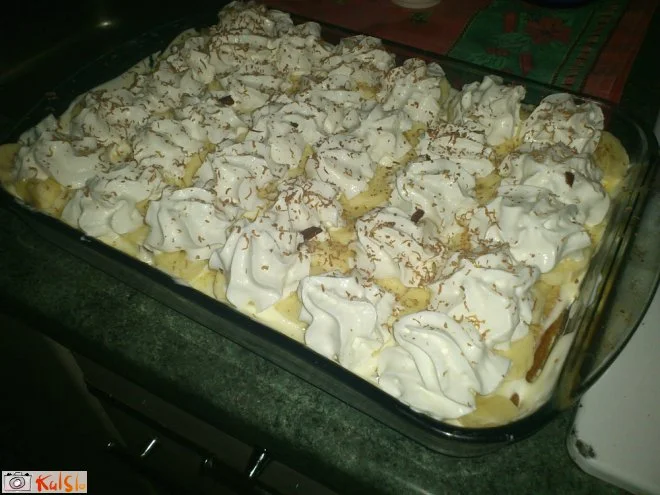 V sok pomočimo kekse in z njimi v eni plasti obložimo pekač oz skledo. Premažemo s kislo smetano. Na smetano damo narezane banane ter postopek še enkrat ponovimo.