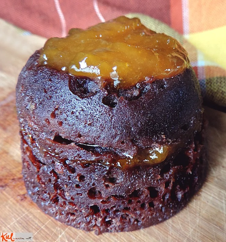 Medtem v vodni kopeli (ali v mikrovalovki, z malo tekočine) stopimo čokolado za preliv.