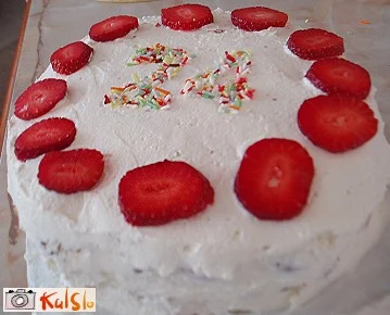 Biskvit prelijemo s sokom iz pločevinke, v katerega zmešamo žlico ruma.