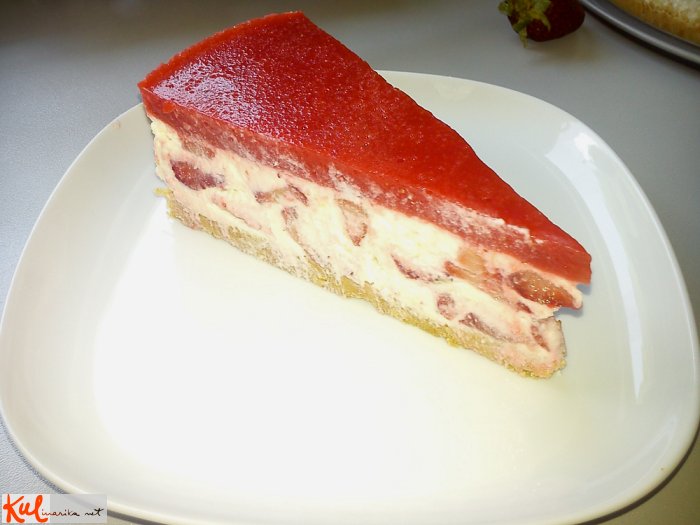 osvežilna jagodno skutina torta, ki je še zelo dekorativna povrh in se ne peče