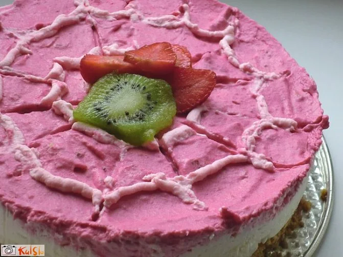 Jagode zmečkamo v pire (sekljalniku, paličnem mešalniku). Naredimo kremo iz stepene sladke smetane, res stepemo do trdega, dodajamo ročno mascarpone, po okusu sladkamo, nato kremo razpolovimo. Za jagodni del v polovico kreme dodamo jagodni pire in jagodni jogurt. Če krema ni dovolj kompaktna, jo še malo stepemo z mešalcem - do 20 sekund.