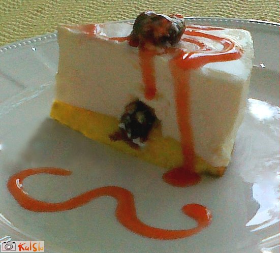 smetano stepemo z malo sladkorja. V drugo posodo vlijemo jogurt, mu dodamo sladkor in mešamo, da se ta stopi. Nato mu primešamo skuto in nazadnje še stepeno smetano. Želatino namočimo v mrzli vodi. Ko se napne, jo poberemo ven in damo v ogret sadni sok, da se raztopi. V soku stopljeno želatino primešamo mešanici jogurta, skute in smetane.
