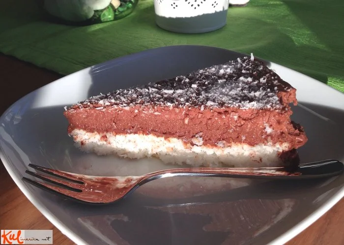 Jaz delam podobno torto edino da specem prej v tortnem modelu krhko testo nato pa naredim cokoladno kremo in kokosovo kremo in potem vse v hladilnik za nekaj uric!