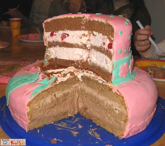 Sama nisem dajala nobene opore za zgornje nadstropje torte, pa se ni nič sesedlo.