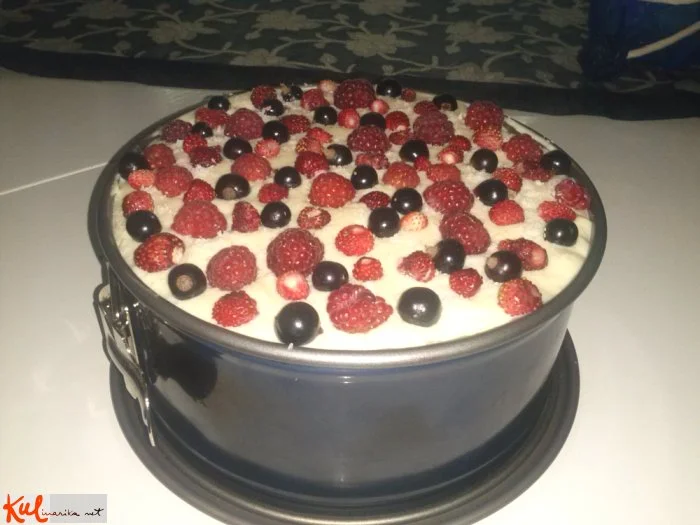 Okrasimo po želji :) Sam sem za okras po vrhu potresel kokosovo moko, črn ribez, gozdne jagode in maline.