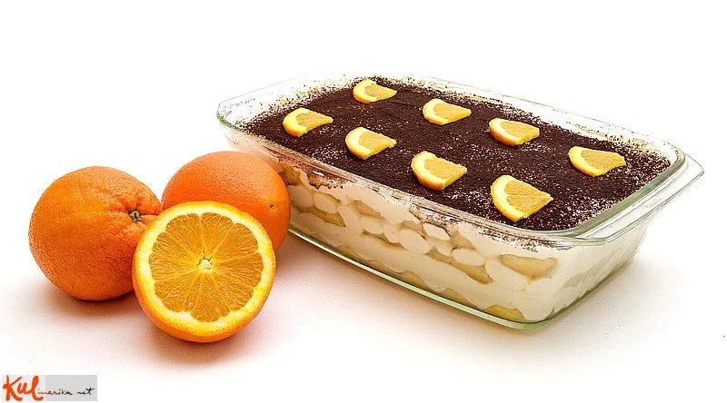 preprost tiramisu iz sveže izstisnjenega pomarančnega soka