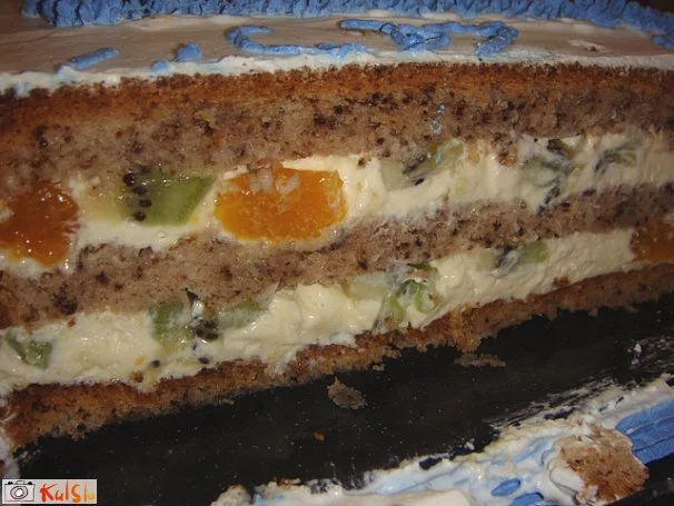 Naredimo kremo: skuto zmešamo s sladkorjem, vanilijevim sladkorjem, rumenjakoma in limono (sok + lupina). Želatino namočimo v hladni vodi (po navodilih na vrečki). Rum segrejemo, želatino raztopimo v njem in počakamo, da se malo ohladi. Smetano stepemo, ji primešamo skutno zmes in ohlajeno (a še tekočo) želatino. Kremo damo za pol ure v hladilnik. Narežemo kivije (lahko dodamo tudi kakšno drugo sadje, na sliki so vložene mandarine). Tortne oblate namažemo s kremo, nanje polagamo kivije, torto sestavimo in celo premažemo s preostalo kremo ter okrasimo. Damo jo še za par ur v hladilnik.