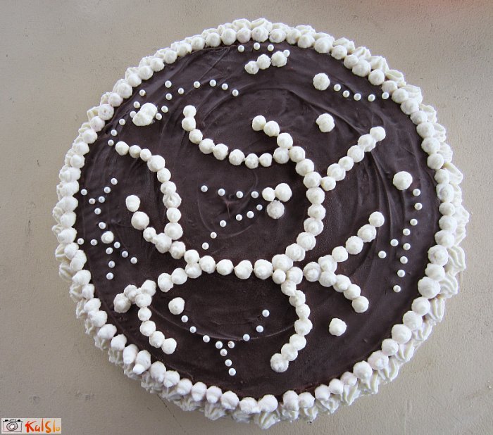 Za okrasitev stepemo smetano s sladkorjem. Čokolado raztopimo v vodni kopeli in ji ničesar ne dodajamo (pazimo, da vodna para ne pride v čokolado, ker se bo sicer sesirila!).