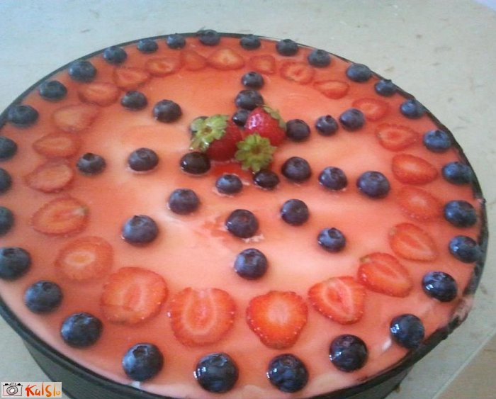 Na navlažen biskvit najprej namažemo mascarpone in po vrhu jogurtovo kremo. Okrasimo s sadjem in po navodilih iz vrečke pripravimo žele. Vse skupaj damo v hladilnik in pustimo čez noč, da se strdi.