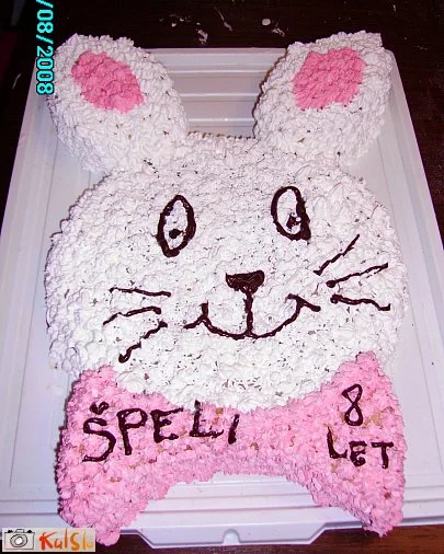Ko sta bila otroka majhna, ojoj, to je že 20-25 let nazaj, sem jima tudi jaz delala torto zajčka. Sem pa najprej razrezala ušesa in mašno in šele nato filala s kremo.