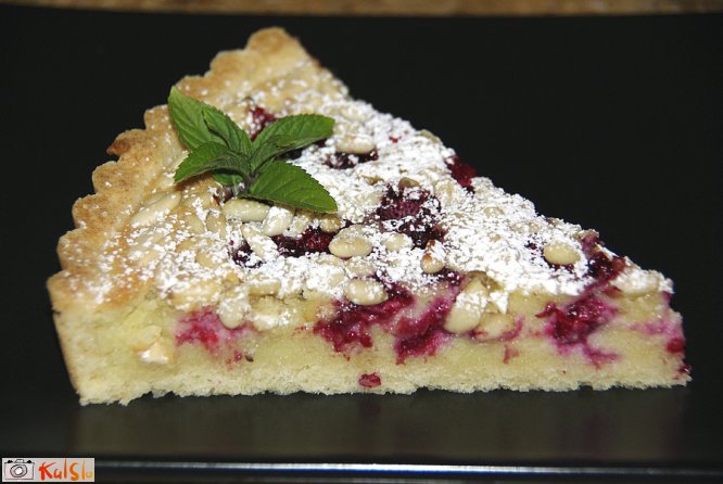 Saj vem, da je samohvala, ampak ta konec tedna sem po daljšem času spet delala gornjo torto (lahko bi ji rekla tudi pita). Še od Miklavževe peke mi je ostalo nekaj pinjol in sem se spomnila nanjo. Res je dobra - maline tako in tako "povzdignejo" vsako pecivo.