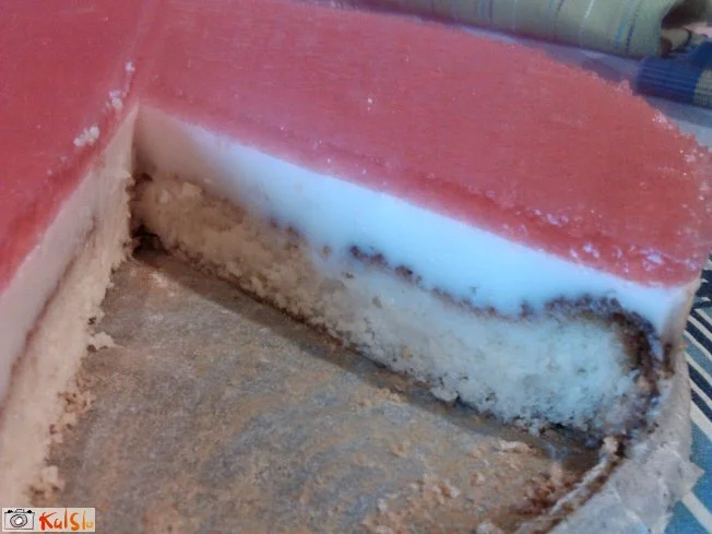 Rumenjake ločimo od beljakov in jih stepemo v posodi z navadnim in vanilinim sladkorjem. Dodamo sok in lupino limone ter sol in premešamo. Tekoči masi dodamo moko in pšenični zdrob ter dobro premešamo. V drugi posodi stepemo sneg iz beljakov in ga postopoma vmešamo v zmes drugih sestavin. Pekač za torte obložimo s peki papirjem in vanj vlijemo maso. Pečemo pri 175 stopinjah dokler biskvit ne dobi zlato rjave barve. Ko je biskvit pečen, ga ohladimo in pripravimo belo želatino. V posodo zlijemo jogurt in mu dodamo sladkor ter sok dveh limon. Želatino pripravimo po navodilih na vrečki in jo dodamo jogurtovi zmesi. Jogurtovo zmes in želatino dobro premešamo in polijemo po ohlajenem biskvitu (biskvit je še vedno v pekaču). Pekač postavimo v hladilnik in počakamo, da se želatina strdi. Ko je želatina strjena, v posodi zmešamo čaj, limonin sok, bezgov sirup in pripravljeno želatino ter premešamo. Rdečo zmes polijemo po torti v pekaču in pustimo, da se ohladi. Ohlajeno torto postrežemo.