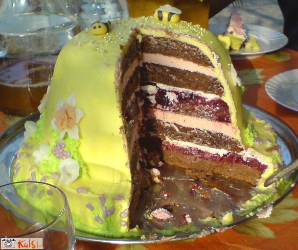 Joj ta bo pa zaenkrat težka...Namreč torto sem pekla kakšna dva tedna nazaj....In ker je bila tako zelo dobra (malo reklame, hihi) na žalost nisem uspela slikati prereza. Jo pa nameravam kmalu spet delati in obljubim, da jo bom bolj poslikala.