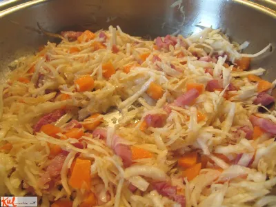 Polnozrnati peresniki z omako iz bučk, čebule in mandljev