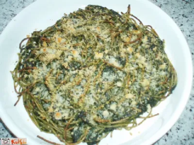 Casarecce iz čičerike z bučo, porom, brokolijem, šetrajem, parmezanom in olivami