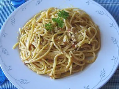 Gratinirani fuži s sirom in pršutom