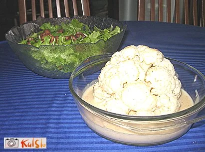 Cvetačo operemo in jo skuhamo v slani vodi, ki smo ji dodali skodelico mleka. Kuhano previdno dvignemo z lopatico na krožnik ali stekleno skledo in jo polijemo z naslednjo polivko: