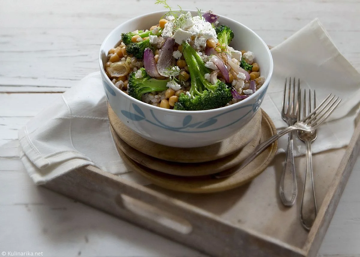 Ješprenjčkova solata s pečenim brokolijem in čičerikotopla ješprenova solata