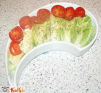 Kitajsko zelje razdelimo na liste, operemo in izrežemo debele spodnje dele (uporabimo vrhnje, mehkejše). Iz skute, jajca in na koščke narezane šunke naredimo nadev in ga začinimo (sama sem uporabila kar Dukatelin namaz s šunko, se je mudilo). Napolnimo liste in jih zavijemo kot sarmice. Narejene zvitke pokapljamo s solatnim prelivom oz. poljubno marinado.