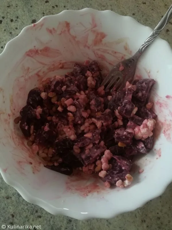 Solata rdeče pese iz tastove kuhinjeokusna solata z rdečo peso, tudi za najbolj izbirčne