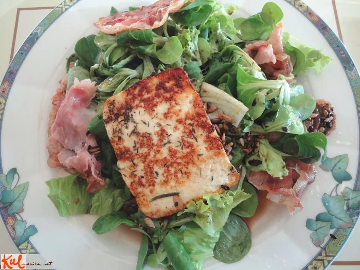 Solata z medom in popečenim kozjim siromsolata je nasitna in hitro pripravljena samostojna jed