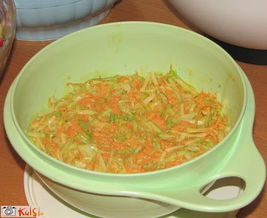 Zelje narežemo na rezance. Korenje operemo in ga naribamo na malo debelejše luknje. Koruzo odpremo, odcedimo in z mrzlo vodo splaknemo. Vse to skupaj zmešamo z majonezo, solimo, popramo ter dodamo malo vode in kisa, da postane solata sočna. Po okusu lahko dodamo tudi malo drobnjaka.