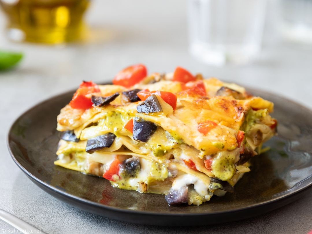 V istem vrstnem redu dodajajte plasti listov lazanje, zelenjave in pesta.