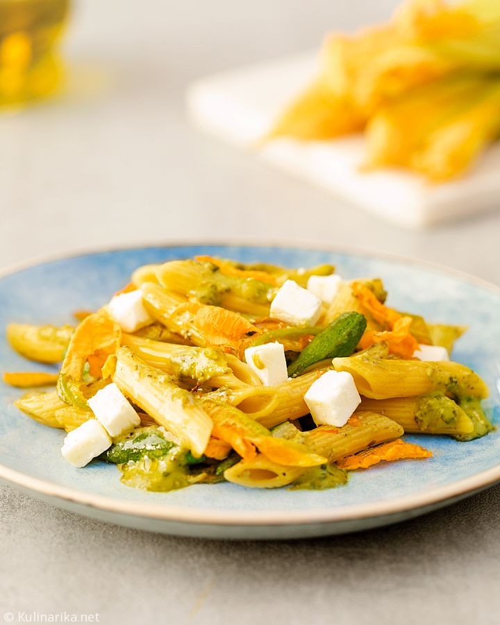 Najboljše testenine z baziliko in cvetovi bučk