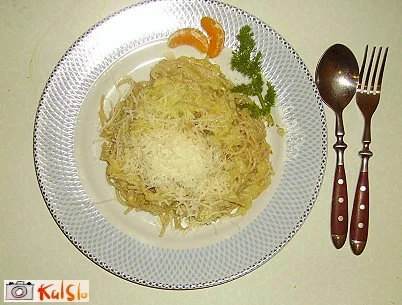 Pašto s koromačem lahko damo v pekač, polijemo s skutino kremo, mogoče še potresemo z drobtinicami in zapečemo v pečici.