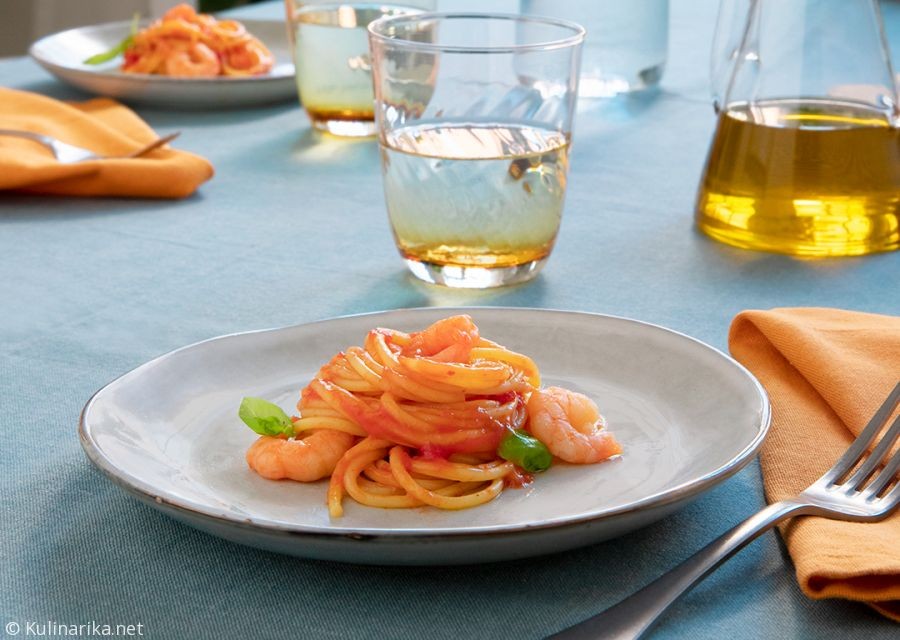 Kdo pravi, da hitro pripravljenim receptom doma manjka ustvarjalnosti in okusa? Spaghettoni z omako iz kozic, paradižnikov in sveže bazilike so odličen primer: preprosto in hitro skuhani, pa vendar neznansko okusni! Zakaj jih ne bi pripravili več in bližnjim pokazali, da jih imate radi?