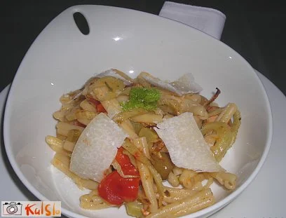 Testenine skuhamo al dente, jih odcedimo in premešamo s pečeno zelenjavo. Postrežemo z ostružki parmezana. Po žeji prelijemo z malo dobrega olivnega olja.